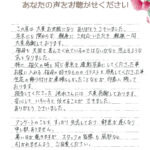 前回は初めての経験で二転三転する事が沢山あり、今回も決まっていた事が急に変更になったりと、なかなか打ち合わせ通りに話が進まず久保さんには大変御迷惑をおかけしました。そのような時でも親身になり対応して頂き、私共家族にとっては、とても心強かったです。もちろん久保さんのお人柄もありますが、他のスタッフさんの対応等、社内の雰囲気も良く、内輪の事で話しにくい事でも話せてしまう安心感があるのも心音さんの良い所です。